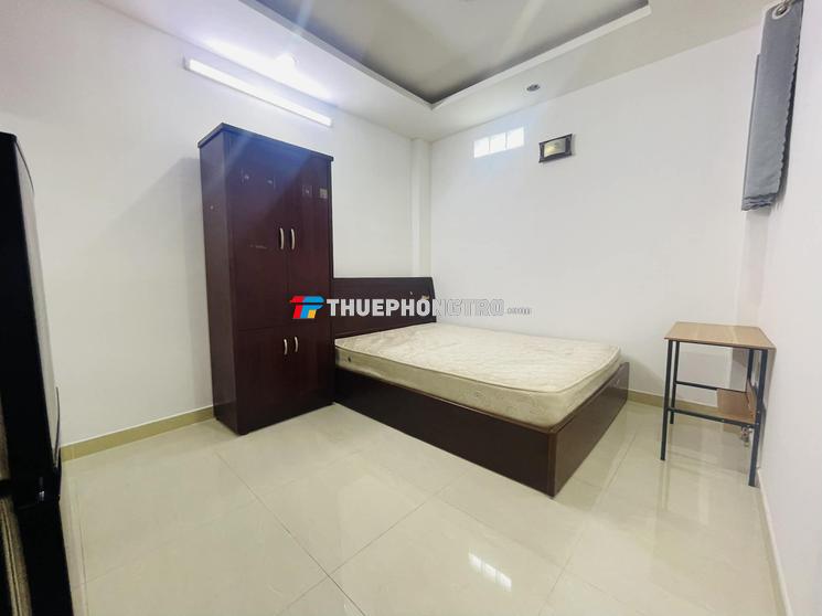 Nội thất đầy đủ: giường, nệm, tủ, kệ bếp, tủ lạnh, máy lạnh, bàn ghế làm việc, nước nóng lạn cần xách quần áo vào ở