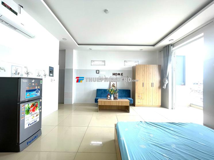 * Về nội thất: Phòng đều được trang bị đầy đủ full nội thất, tất cả đều sử dụng đồ mới, cao cấp, từ giường ngủ 1m8x2m, nệm, tủ quần áo 3 cánh, 1 bộ sô pha nệm, 1 bàn trang điểm, 1 tủ lạnh, 1 máy lạnh mới, 1 bộ bàn ăn nhỏ, máy nước nóng. Khu vực nấu ăn thì đã có sẵn kệ bếp, bồn rửa. WC riêng bên trong phòng sạch sẽ và rộng rãi. Cửa chính và cửa phòng vệ sinh trang bị cửa gỗ cách âm tốt.